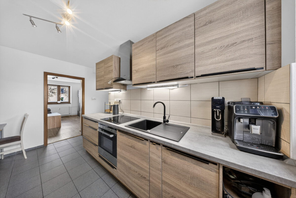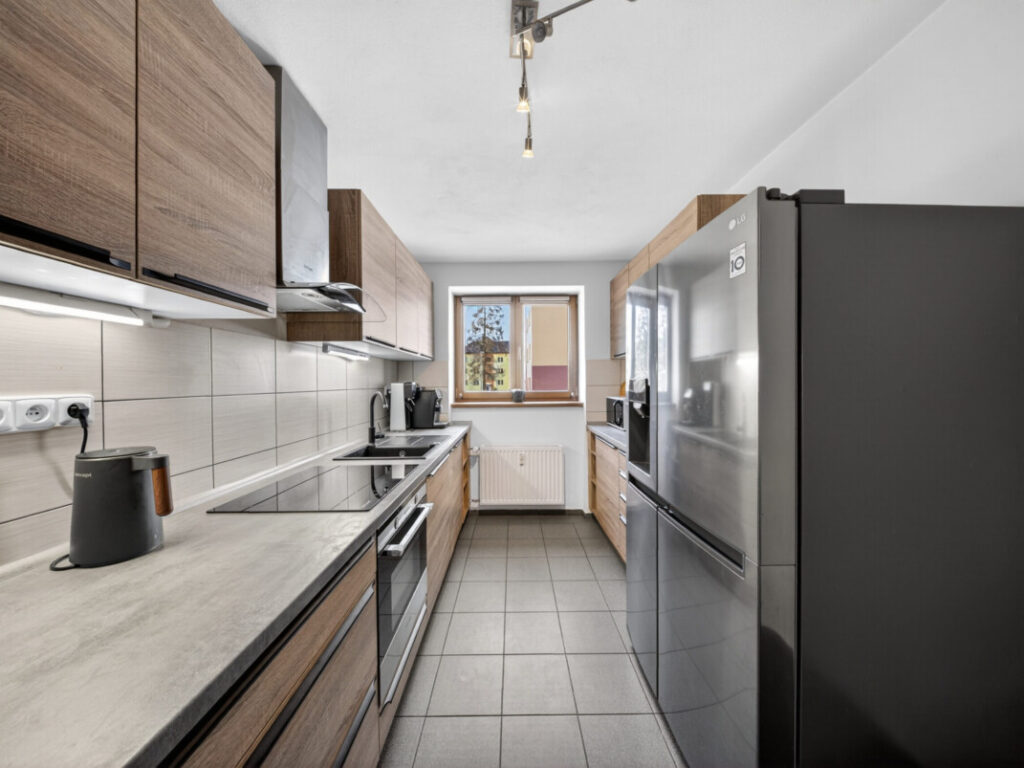 Byt prošel kompletní rekonstrukcí před přibližně 8 lety, přičemž kuchyňská linka byla modernizována před cca 2 lety a je vybavena vestavěnými spotřebiči, konkrétně myčkou, troubou a sklokeramickou deskou. Díky tomu je byt ve velmi dobrém stavu a připravený k okamžitému užívání.